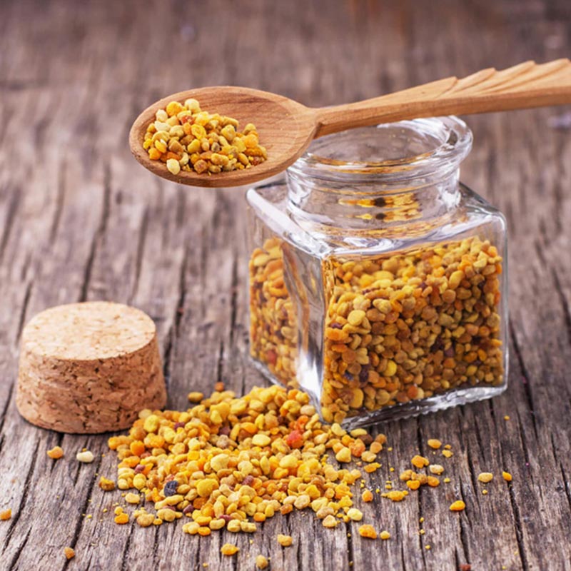 Polen tüm vitaminleri (A, B, C, D, E) taşır. Aynı zamanda bir antioksidandır; yara ve yanıkların iyileşmesini hızlandırır: zeka için iyidir.